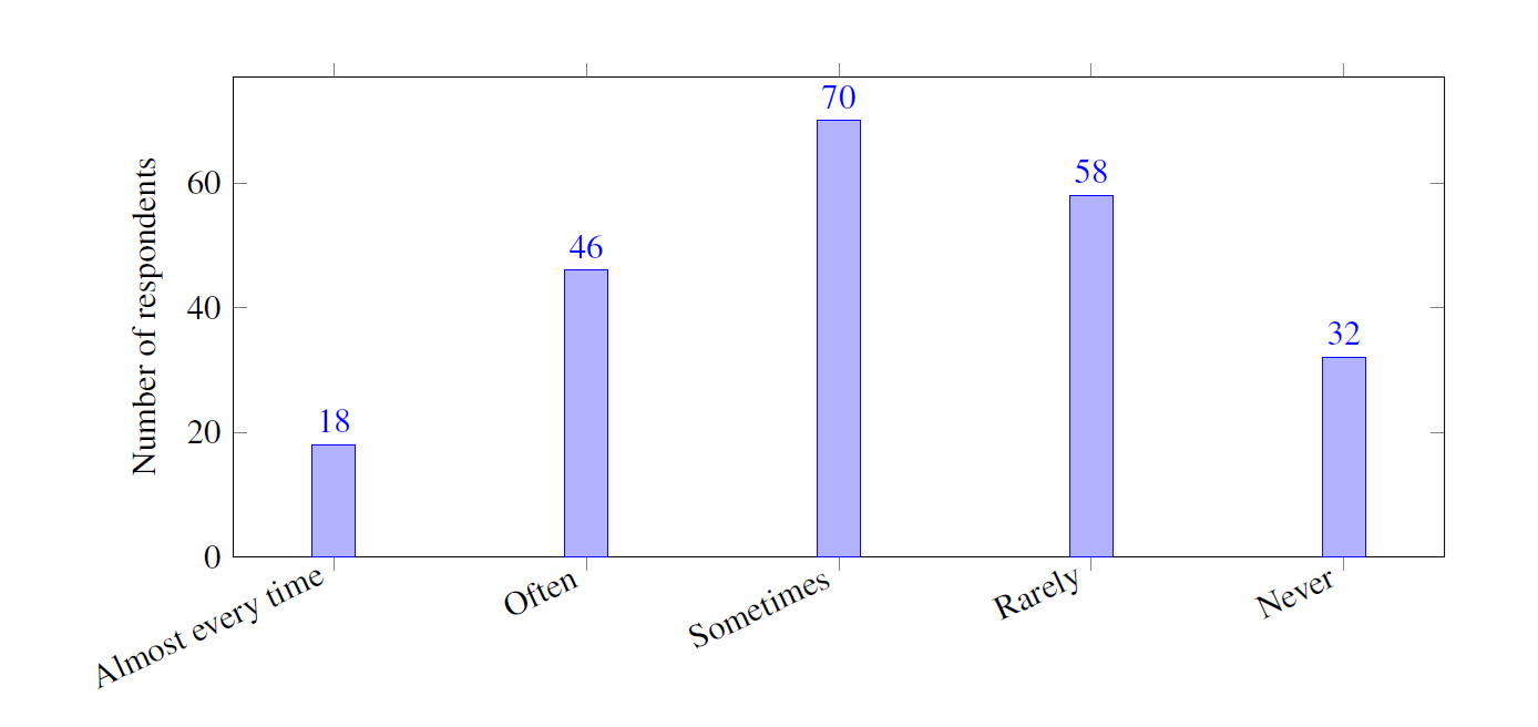 Figure 1 visualizes the distribution of walking-preference responses, highlighting the dominance of mid-range choices and the non-trivial share of respondents who reported rarely or never choosing to walk.