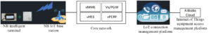 After collection and preprocessing, the platform exposes data to industry applications for analysis and service development. By combining big data pipelines with AI-related technologies, the application layer can support intelligent monitoring, diagnosis, and decision-making for industrial operation and maintenance. NB IoT equipment access scenario.